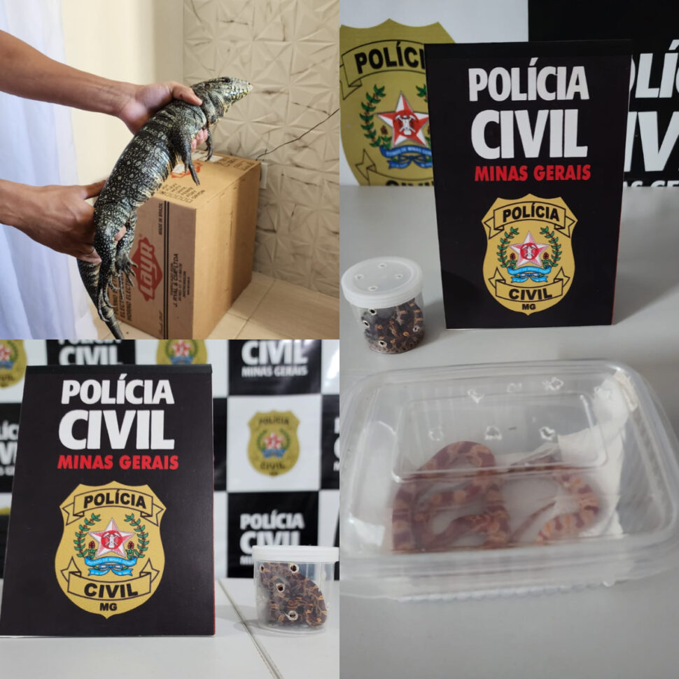 Em Lavras, Sul do estado, a Polícia Civil de Minas Gerais (PCMG) apreendeu duas cobras-de-milho e um lagarto teiú, nessa quarta-feira (15/5), durante investigação de entrega de animais silvestres via Correios. Três suspeitos, todos de 19 anos, foram autuados com base no artigo 31 da Lei de Crimes Ambientais – “Introduzir espécime animal no País, sem parecer técnico oficial favorável e licença expedida por autoridade competente”.