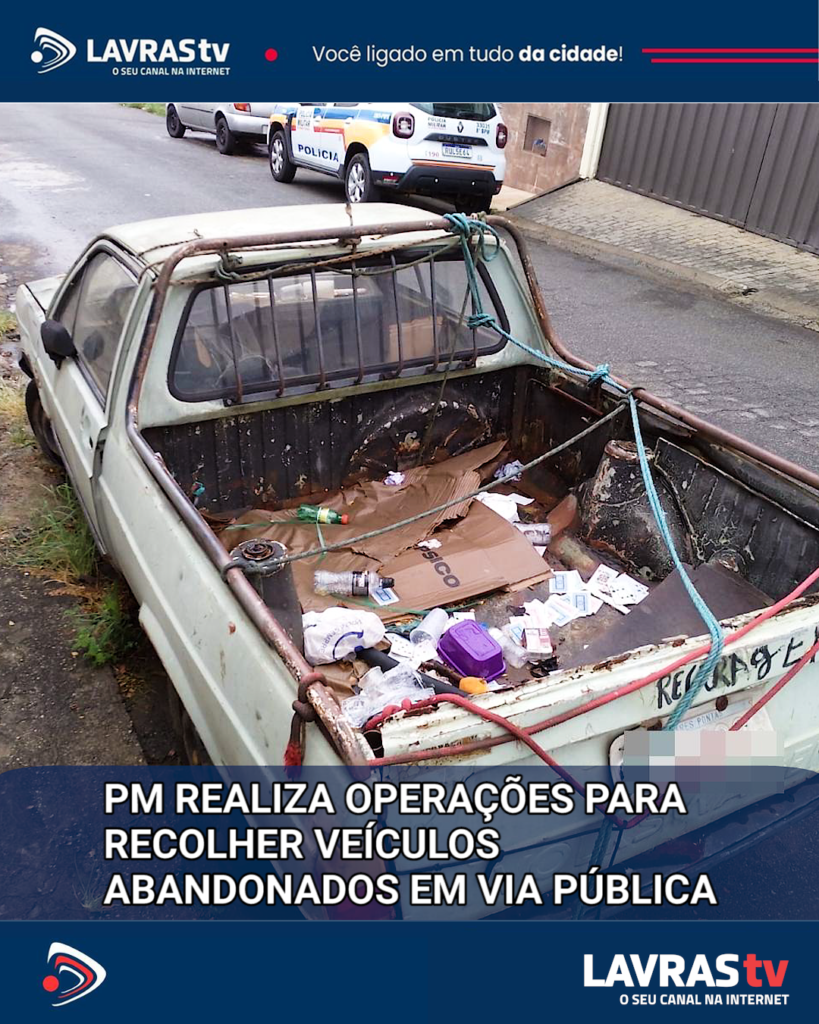 (LAVRAS): Na última segunda-feira (10/06), a Polícia Militar realizou operação policial com ações voltadas à fiscalização e apreensão de veículos abandonados em vias públicas, devido a recente alteração do Código de Trânsito Brasileiro.