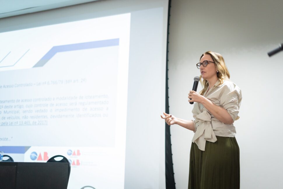 Os palestrantes foram: Dr. Gilberto Netto, que tratou do tema “Aspectos gerais sobre os procedimentos desjudicializados e atuação do advogado em questões imobiliárias”, Dra. Rachel Barcelos, que discutiu as “Diferenças legais entre loteamento de acesso controlado e condomínio de lotes”, e Dr. Marcelo Naves, que palestrou sobre “Contratos imobiliários”.
