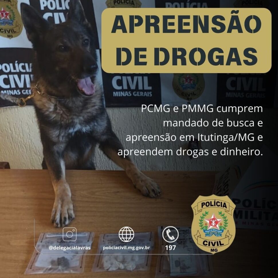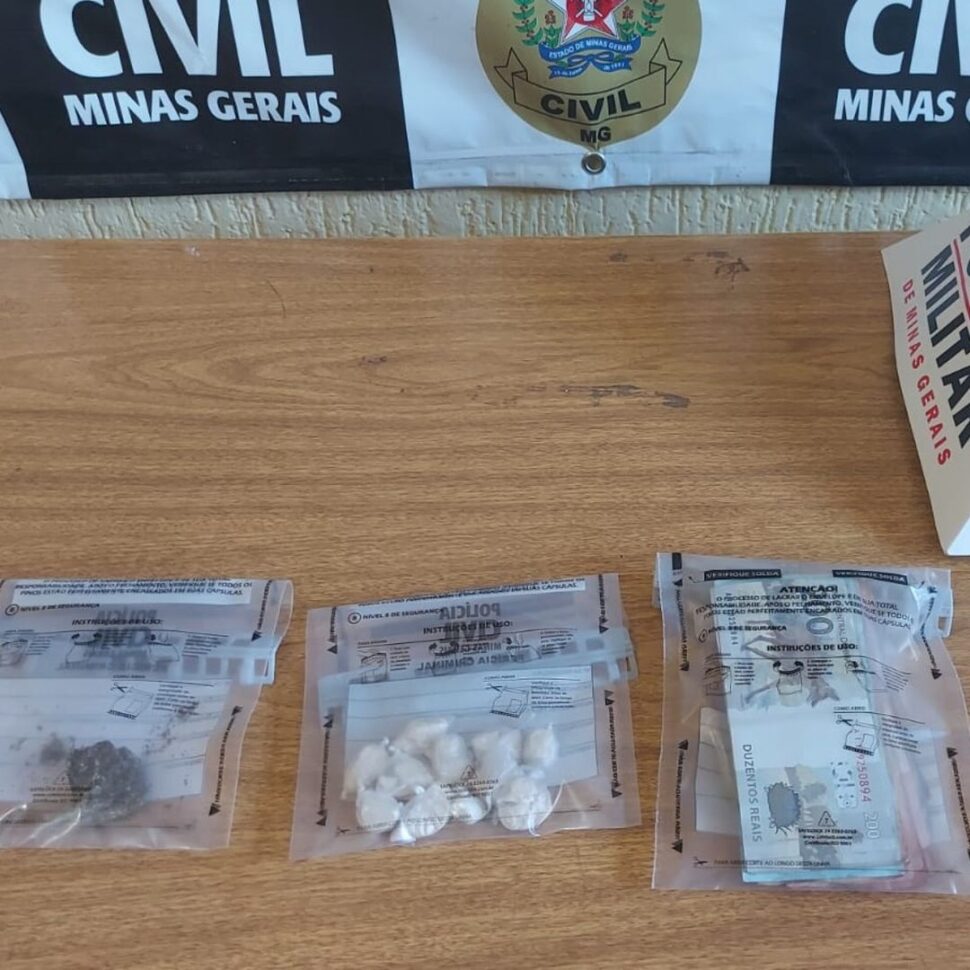 Durante a ação, desencadeada na cidade de Itutinga, foram apreendidos 11 porções de cocaína e uma de maconha, além de R$ 3.495 fracionados em notas diversas.