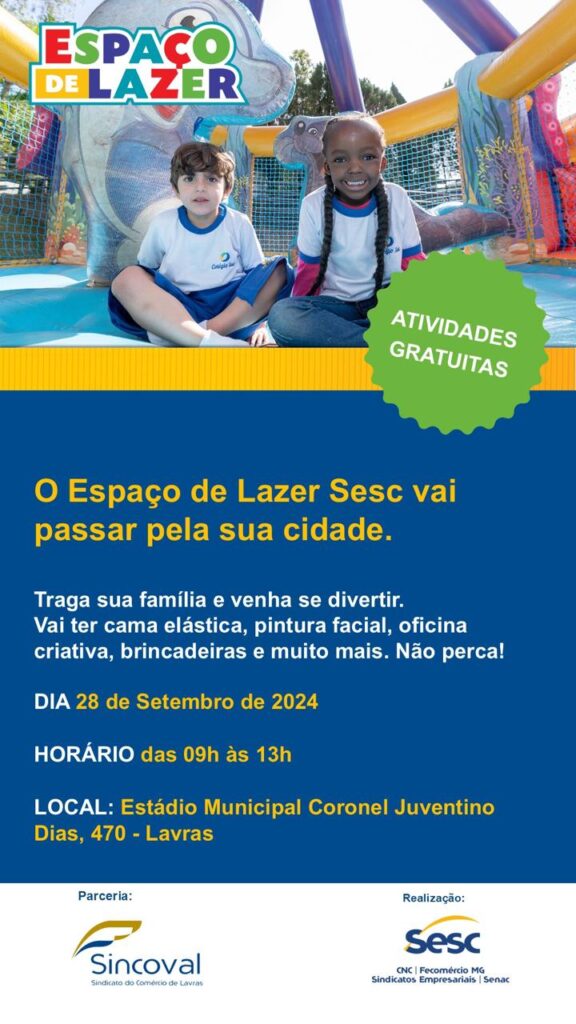 Diversão para todas as idades: Sistema Fecomércio MG, por meio do Sesc em Minas,leva atividades recreativas gratuitas a Lavras