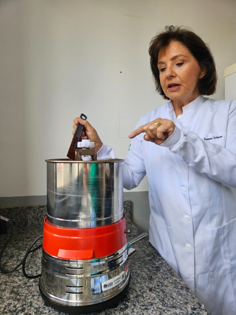 Ao contrário do que muitos imaginam, o chocolate não nasce doce. Ele nasce no campo, na fermentação das amêndoas de cacau, um processo conduzido por micro-organismos que transformam açúcares em compostos responsáveis pelo sabor. “Sem fermentação, o cacau não tem sabor de chocolate”, explica a professora Rosane Schwan. “Nosso trabalho é conduzir esse processo com base científica, garantindo qualidade e regularidade.”